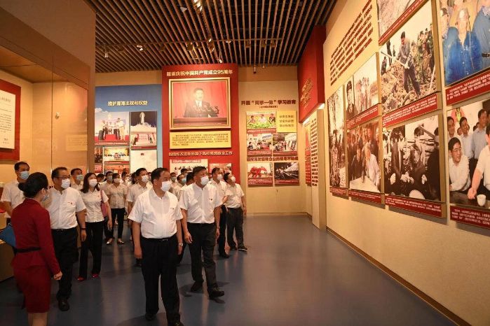 黨的歷史是最生動、最有說服力的教科書。沿著百年黨史脈絡,全體人員依次參觀了“建立中國共產黨奪取新民主主義革命偉大勝利”“成立中華人民共和國進行社會主義革命和建設”“實行改革開放開創和發展中國特色社會主義”“推進中國特色社會主義進入新時代全面建成小康社會開啟全面建設社會主義現代化國家新征程”等四大展區。珍貴的文物實物、翔實的檔案資料、生動的圖片視頻、逼真的復原景觀吸引著全體人員駐足凝視、重溫歷史