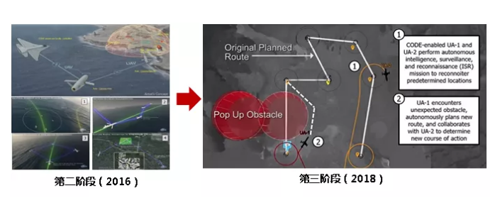第三階段從2018年1月開始,測(cè)試使用6架真實(shí)無(wú)人機(jī)以及模擬飛機(jī)的協(xié)同能力,實(shí)現(xiàn)單人指揮無(wú)人機(jī)小組完成復(fù)雜任務(wù)。
